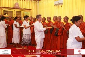 ඉන් අනතුරුව ශ්‍රී ලාංකේය බෞද්ධ සම්ප්‍රදාය අනුව යමින් කිරිබත් කපමින් පිරිත් සජ්ජායනය කරමින් දලයි ලාමා හිමියන්ට පරමායුෂ ප්‍රාර්ථනා කිරීම සිදු කෙරුණා. ටිබෙට් ශ්‍රී ලංකා බෞද්ධ සහෝදරත්ව සමාජයේ හා බෞද්ධ සහෝදරත්ව පදනමේ සභාපති, අන්තර්ජාතික බෞද්ධ සංසදයේ නියෝජ්‍ය මහලේකම් ආචාර්‍ය දමෙන්ද පෝරගේ මහතා විසින් මහා සඟරුවනේ පිරිත් සජ්ජායනය මධ්‍යයේ කිරිබත් කැපීම සිදු කළා.