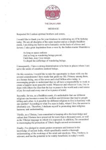 ශුද්ධෝත්තම දලයි ලාමා වහන්සේ අපවෙත එවු පණිවිඩය පහතින්.