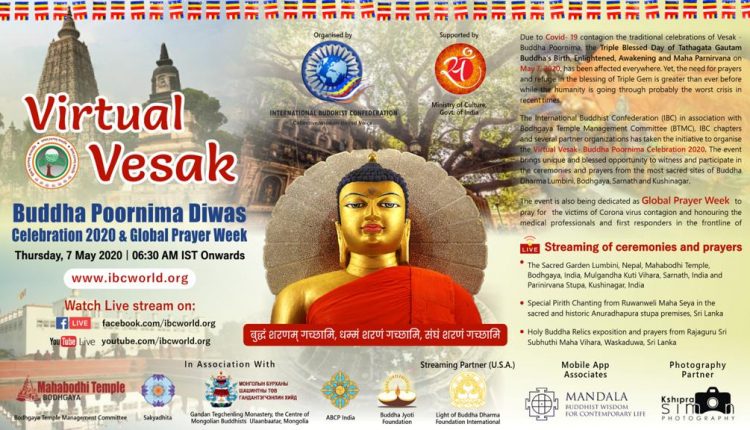 आइबीसी, इन्टरनेशनल बुद्धिस्ट कनफेडेरेसनद्वारा अन्तर्राष्ट्रिय वैशाख दिवस २०२० बुद्ध पूर्णिमा आयोजन गरिन्छ।श्री महाबोधि, बौद्धगयाबाट अनुष्ठान र प्रार्थनाहरुको प्रत्यक्ष प्रसारण भारत, श्रीलंका, नेपाल अनि म्यानमारमा पवित्र बौद्ध साइटहरूसित जोडिनेछ। उक्त प्रसारण विश्वमा प्रसिद्ध बौद्ध गुरुहरुद्वारा सम्बोधनका साथै राजगुरु श्री सुभुथि विहार, श्रीलंकामा कपिलवस्तु पवित्र बुद्धका अस्तु धातुको प्रदर्शन गरिने छ।