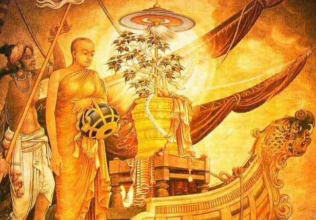 සංඝමිත්තා තෙරණින් වහන්සේ සමඟ තවත් භික්ෂුණීන් එකොළොස් නමක්ද එදින ලංකාවට වැඩම කළහ. දඹකොළ පටුනට පෙරහරින් ගමන් කළ දේවානම්පියතිස්ස රජතුමා අතිමහත් භක්තියෙන් කරවටක් මුහුදේ බැස සංඝමිත්තා තෙරණිය වැඩි නැව ආසන්නයට යමින් ශ්රී මහා බෝධිය සමඟ රන් පාත්තරය පිළිගෙන මහ පෙරහරින් අනුරාධපුරයට වඩම්මවා මහමෙව්නාවේ රෝපණය කරන ලදී.