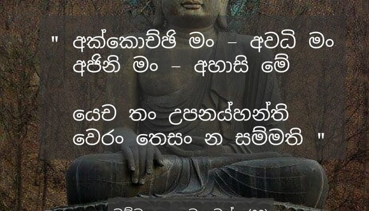 Dhammapada Life with ”Dhammapada” #05 On Jul 31, 2020 Share “අසවල් කෙනා මට බැන්නා, මට පහර දුන්නා. මාව පරාජය කළා, මගේ දේ පැහැරගත්තා” යැයි සිතීමට ගොස්, යම් කෙනෙක් ක්රෝධයෙන් බැඳී ගියහොත්, ඒ අයගේ වෛරය කිසිදාක නොසන්සිඳේ” ධම්ම පදය – යමකවග්ගය (03) ” He abused me,he struck at me He overcame me, He robbed me, Those who bear ill-will towards this Their hatred is never appeased.” The Dhammapada – Yamaka Wagga (03) Share FacebookTwitterGoogle+WhatsAppEmailTelegramViberPrint