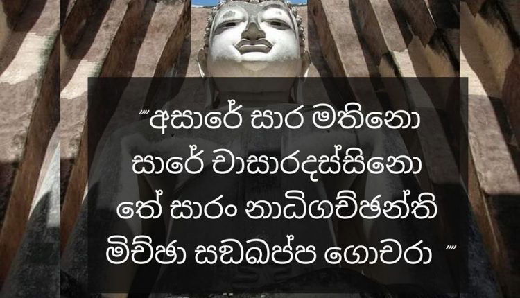Dhammapada Life with “Dhammapada” – #10 On Aug 6, 2020 Share “මේ ලෝකේ නිස්සාර දේවල් තිබෙනවා. සමහරුන්ට ඒවා පෙනෙන්නේ සාරවත් විදියටමයි. එවැන්නන්ට සීල, සමාධි, ප්රඥා ආදී සාරවත් දේ, නිස්සාර දේවල් හැටියටමයි පෙනෙන්නේ… මිත්යා අදහස්වලටයි ඔවුන් ගොදුරු වෙලා ඉන්නේ.. එවැනි අඥාන ජනයාට එලොවදීත් මෙලොවදීත් සාරවත් දෙයක් නම් ලැබෙන්නෙ නැහැ”. ධම්මපදය – යමක වග්ග (11 ) “ Finding the essential in the unessential, Seeing the Unessential in the Essential. They do not understand what is the Essential and resort to wrong intention”.The Dhammapada -Yamaka Wagga (11) Share FacebookTwitterGoogle+WhatsAppEmailTelegramViberPrint