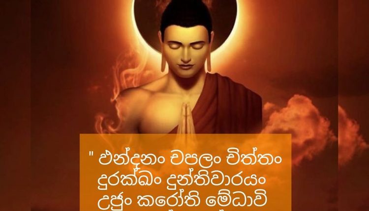 “හිත කියල කියන්නේ අරමුණක් පාසා සැලෙන දෙයක්. චපල දෙයක්. රැක ගන්ට අමාරු දෙයක්. වරදින් වළක්වන්ටත් අමාරු දෙයක්. නමුත් බුද්ධිමත් කෙනා (ධර්මයේ පිහිටලා) එබඳු සිත පවා සෘජු කර ගන්නවා. එය හරියට ඇද කුද හැරලා ඊ දණ්ඩක් සෘජු කරන හී වඩුවෙක් වගේ”.