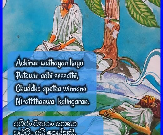 “මේ සිරුර, සිත නැති කල වැඩකට නැත. දරකඩක් සේ පොළොව මත හොවන්නේය.