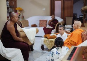 ටික වේලාවකින් කිසියම් කෙනෙකු පැමිණ දොර හැරිය අතර, දොර ළඟ සිටි අපට ඇසුණේ, නිවස තුළට යන අතරම තරමක හඬින් “මහත්තය, හාමුදුරුවරු වගෙයක් ඇවිත්,” කියමින් යමෙක් පැවසූ බවයි.