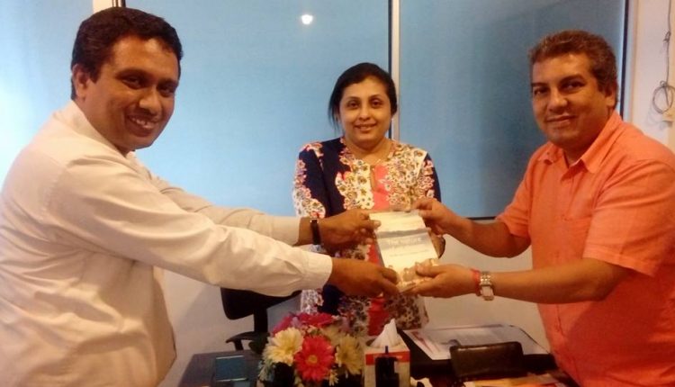 SLTBBS President, Dr. Damenda Porage, handing Chope Paljor Tsering’s ‘Nature of All Things’ to well-known Sinhala writer Ruwan Harischandra. This story, based on Mr. Tsering’s own expierience as a Tibetan child in exile and the journey from Lhasa to India, will be adopted to Sinhala by Mr. Harischandra.